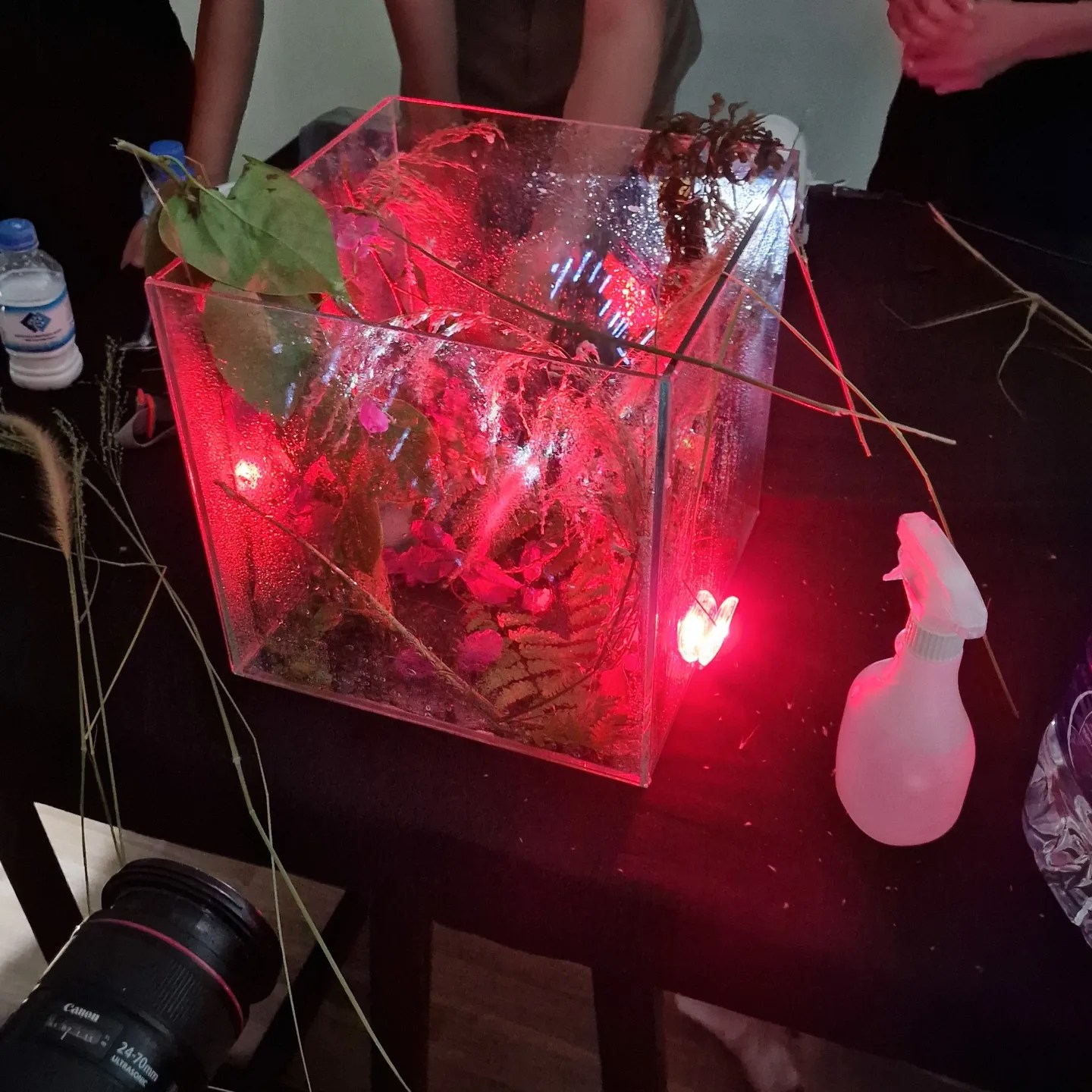 Je propose des ateliers de création vidéo en direct en adaptant mon propre processus de fabrication d’images en temps réel. Je demande aux enfants de manipuler des objets, de la matière, de la lumière devant une caméra reliée à un vidéoprojecteur. Les différents éléments manipulés sont des choses provenant de leur quotidien et qu’ils sont libre de choisir. L’objectif souhaité est d’une part, de les initier d’une manière ludique à construire une histoire esthétique à partir d’une musique et d’autre part, de les sensibiliser à une autre utilisation des nouvelles technologies.